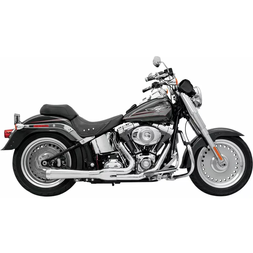 El sistema Bassani Road Rage 2 en 1 para Harley viene con tubos de escape escalonados, acabado cromado o negro y un deflector de núcleo en espiral extraíble.
