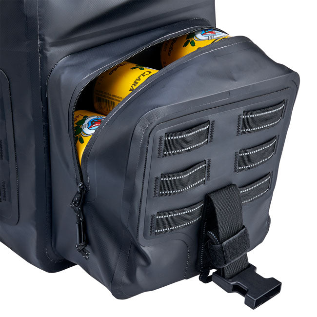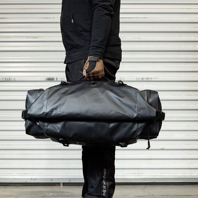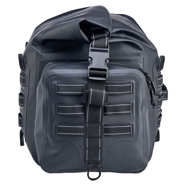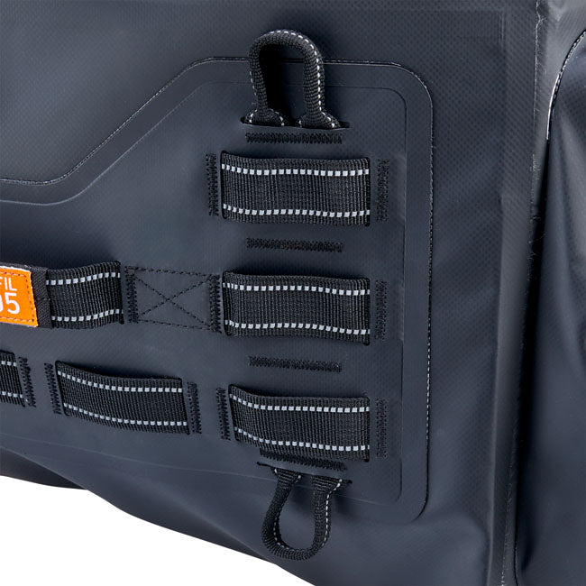 La bolsa impermeable EXFIL-105 es la más grande de la gama EXFIL, diseñada para viajes largos en los que es imprescindible disponer de la máxima capacidad de equipaje y una impermeabilidad total. Diseñada para colocarse lateralmente en un portaequipajes grande, en el asiento o sobre las alforjas, tiene una impresionante capacidad para 105 latas o todos los elementos esenciales para un viaje largo en moto. El compartimento central es 100% impermeable y resistente al polvo gracias a sus costuras termosoldadas, mientras que los grandes bolsillos laterales permiten un acceso rápido sin necesidad de quitar la bolsa.