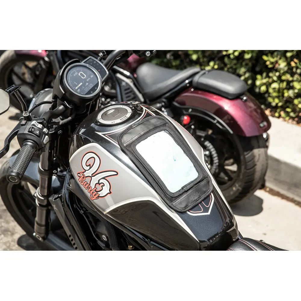 El soporte magnético para teléfono Voyager mantiene tus objetos esenciales y la pantalla del teléfono al alcance de la mano mientras conduces. Fabricado con materiales de primera calidad que envejecen con carácter, se fija de forma segura al depósito con una base magnética resistente. El bolsillo transparente para la pantalla permite una visibilidad total y el acceso al dispositivo, mientras que su diseño compacto lo hace perfecto para viajes cortos o largos.