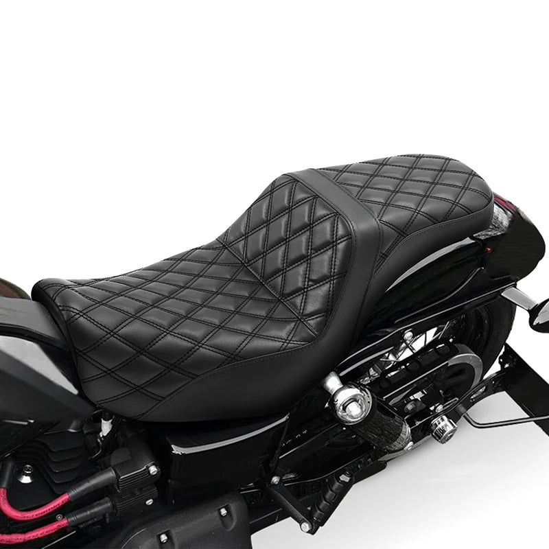 Un asiento 2-Up de perfil bajo que proporciona un mejor control al frenar gracias a la altura reducida del asiento. Su forma larga y estrecha ofrece una excelente libertad de movimiento, al tiempo que mantiene las líneas limpias de la moto.