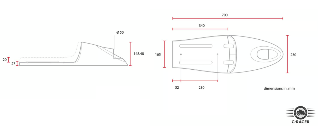 Este asiento café presenta la clásica forma abombada en una versión ligeramente más larga, perfecta para motos de mayor tamaño. La longitud añadida le da a la moto un aspecto más equilibrado y cuidado. Una gran elección si quieres un look café racer atemporal que se adapte a una moto más grande.