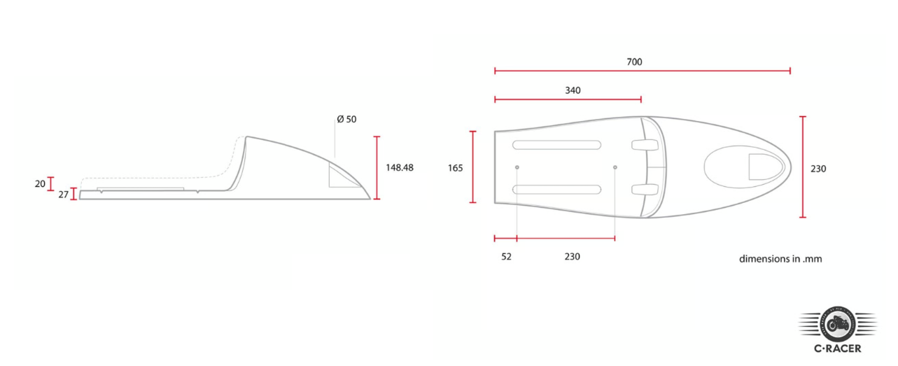 Este asiento café presenta el clásico diseño con joroba en una versión ligeramente más larga. Funciona bien en modelos más grandes y le da a la moto un aspecto general más equilibrado. Perfecto si quieres mantener el estilo café racer atemporal, pero en una versión que se adapta mejor a una motocicleta más larga.