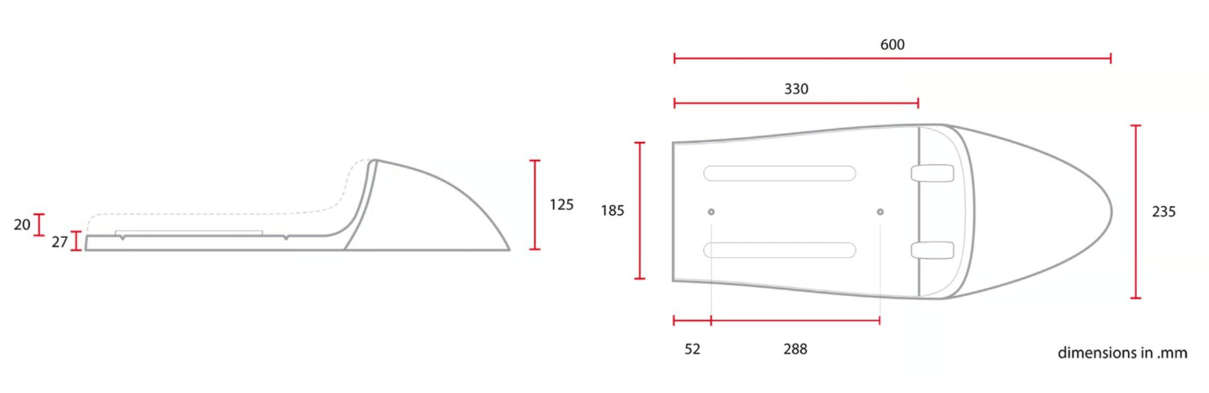 - Construcción de dos piezas con carenado y base del asiento separados