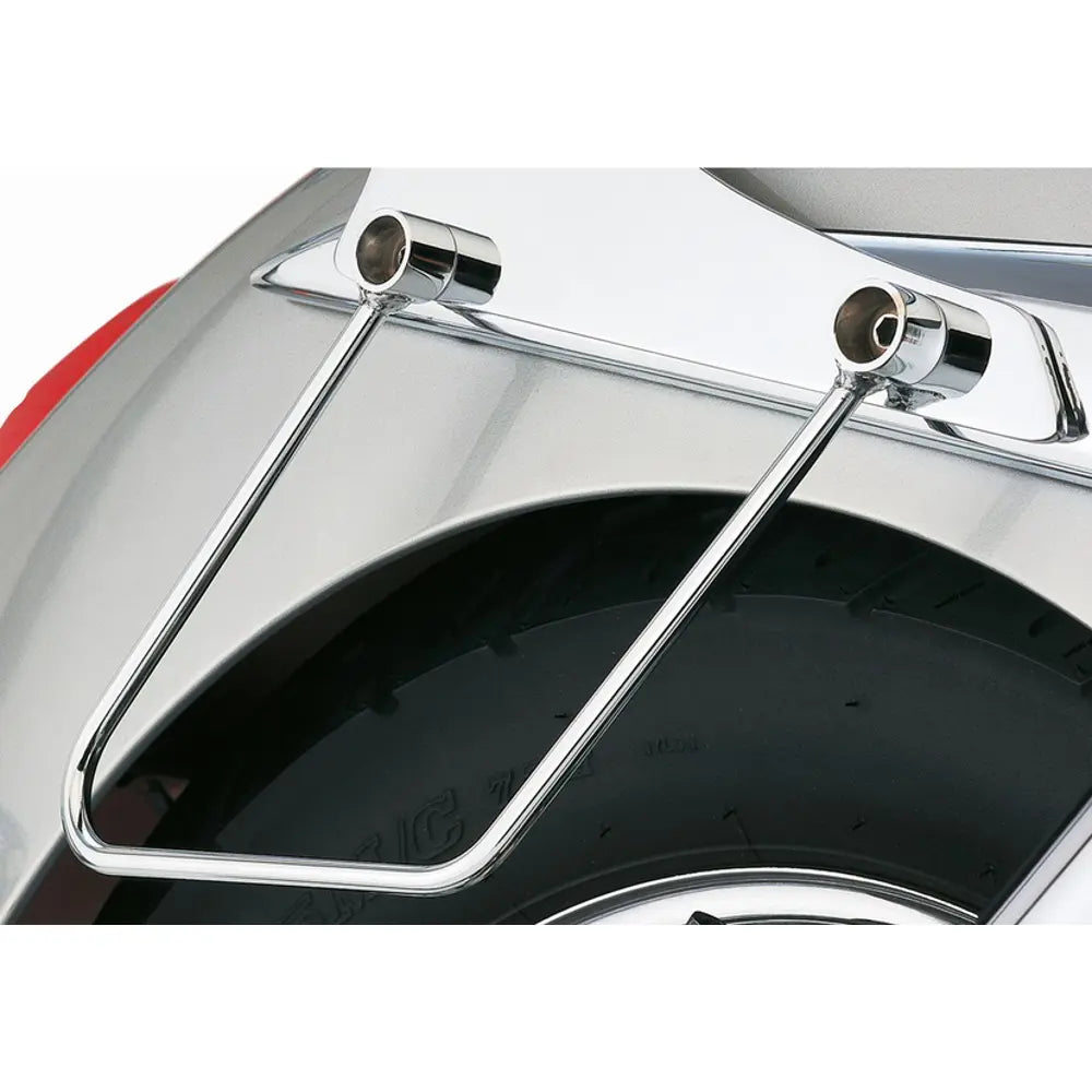 Este kit de soportes evita que las alforjas se comben hacia la rueda trasera y otras piezas móviles. Cada juego se adapta a medida al modelo y se atornilla a los puntos de montaje existentes para facilitar la instalación.