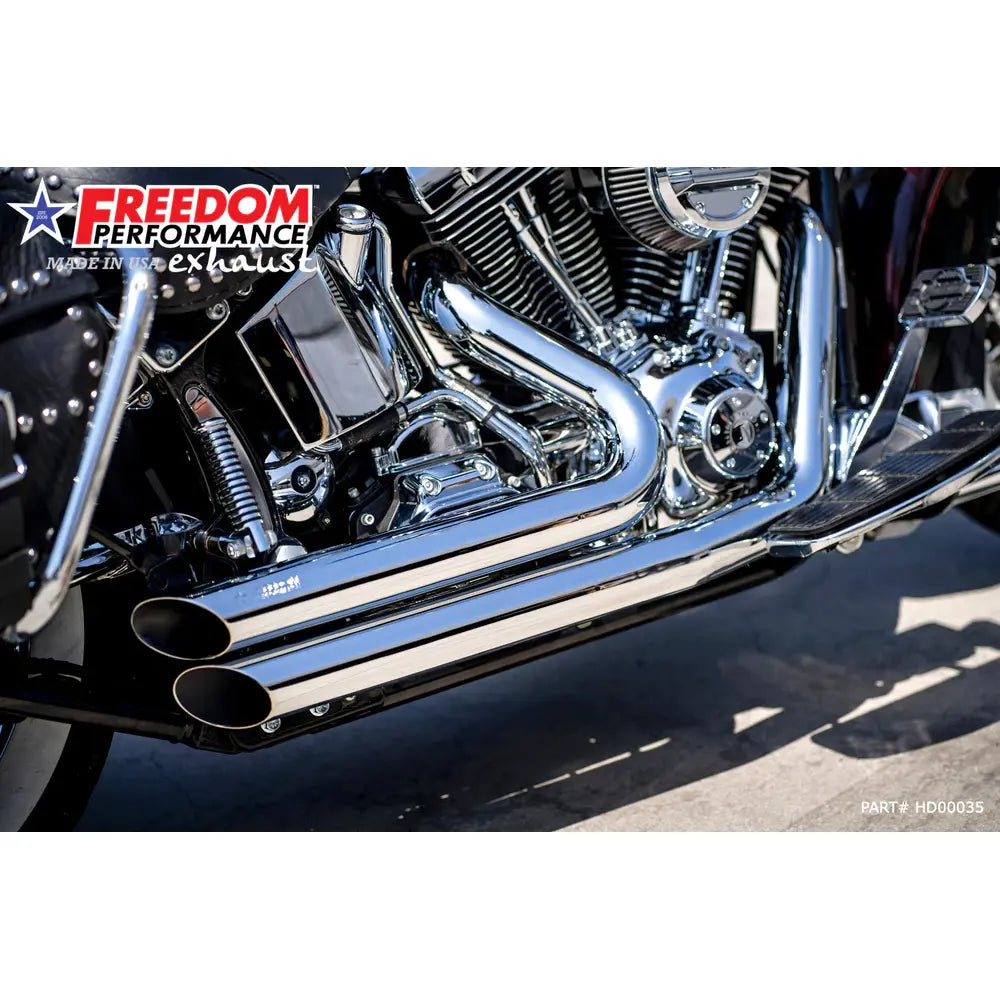Dé rienda suelta a ese profundo estruendo de hot rod con el Freedom Performance escape Amendment Side Slash para Harley. Este sistema aumenta el par y la potencia, manteniendo el estilo clásico de 2 en 2.