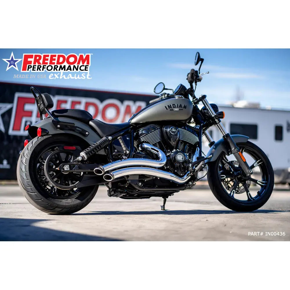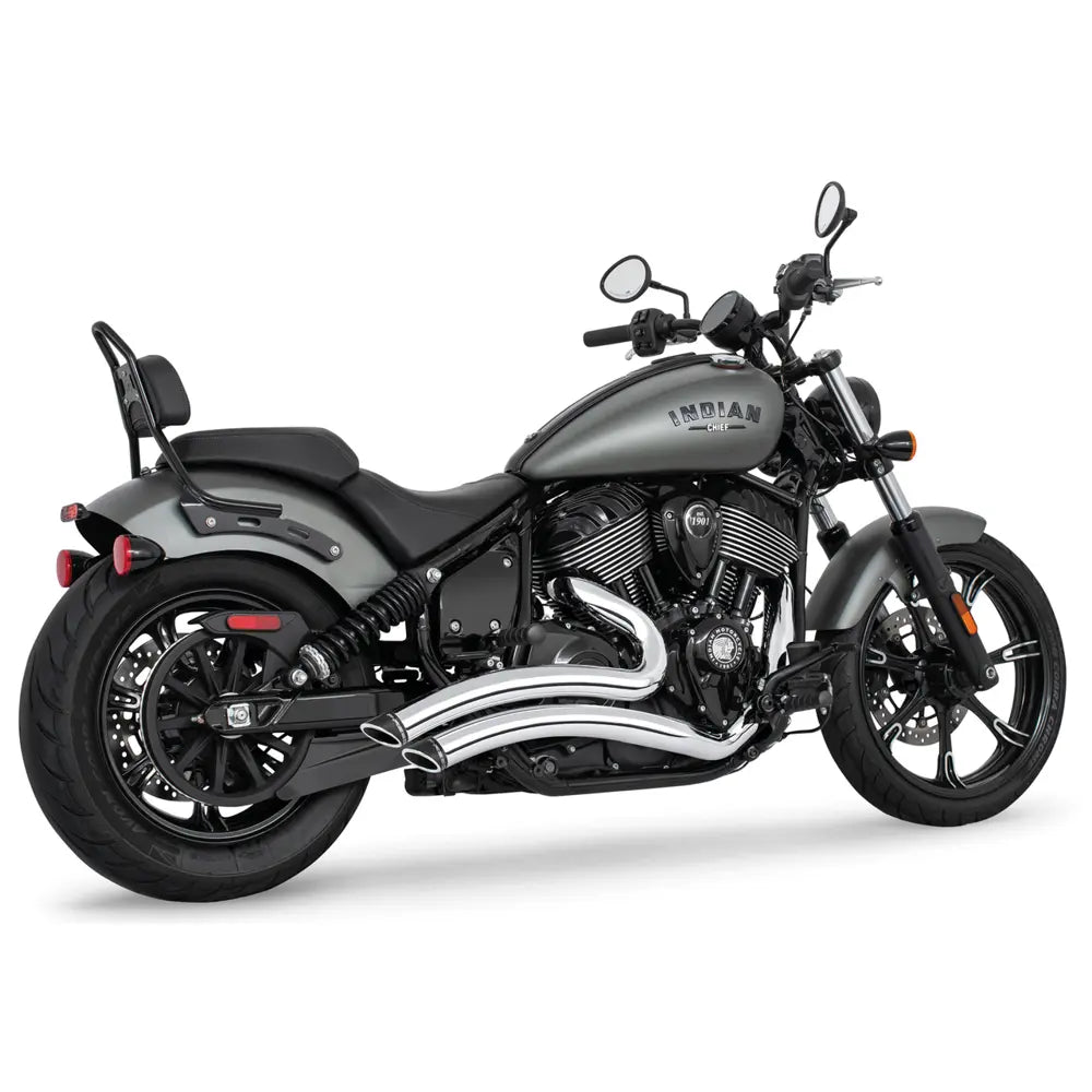 Deja que tu motocicleta Indian gruña con el Freedom Performance sistema de escape Sharp Curve Radius. Los escapes Sharp Curve Radius cuentan con una sola pieza de 2 1/2 "(64 mm) de diámetro exterior de calibre 16 escudos térmicos de alta resistencia que cubren los colectores para un total de 220 grados, así como un sistema de colectores de tres pasos para una potencia óptima y par motor.
