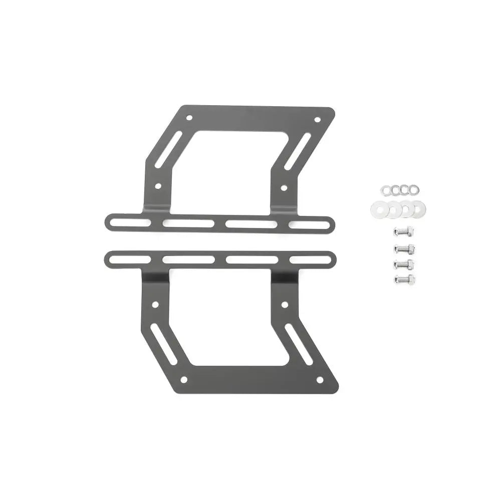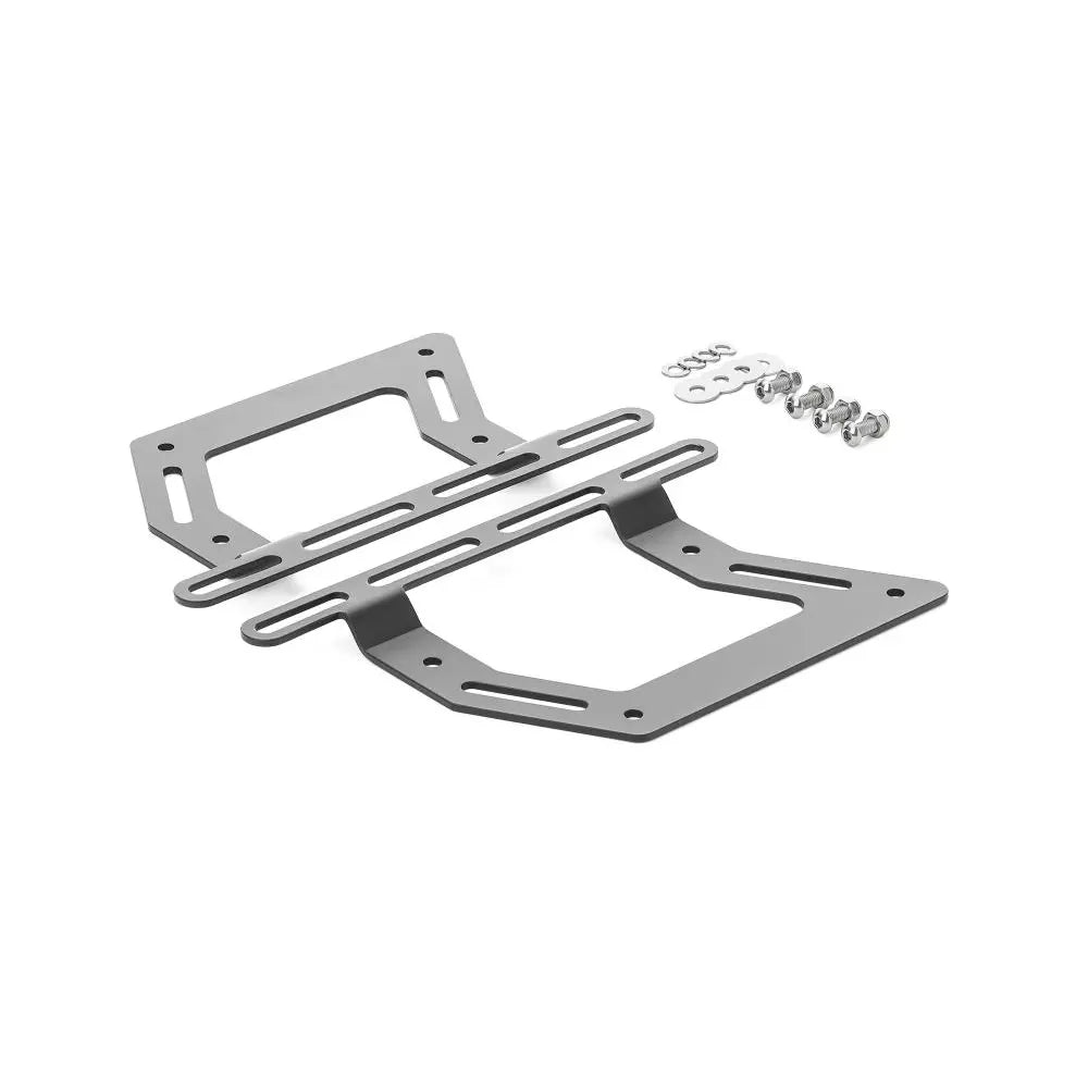 Juego de soportes universales para alforjas fabricados en acero plano con acabado negro mate. Esta estructura es fácil de modificar, soldar y repintar si es necesario. Fabricados en acero de 4 mm de grosor, sostienen la parte trasera de las alforjas.
