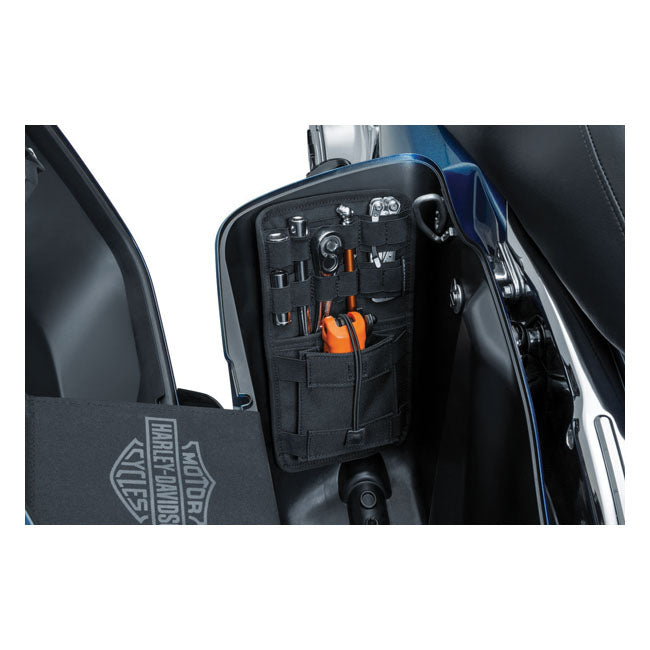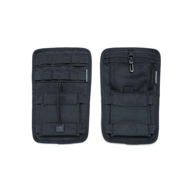 El juego de organizadores para alforjas Kuryakyn facilita el control de los pequeños objetos esenciales que se guardan en las alforjas. Estos organizadores, que se fijan al panel frontal interior con un potente adhesivo 3M VHB, permiten acceder rápidamente a herramientas, teléfonos, mapas y mucho más. Con una combinación de bolsillos con cremallera, expandibles y deslizantes, además de bucles elásticos MOLLE, tu equipo permanecerá organizado y será fácil de encontrar.