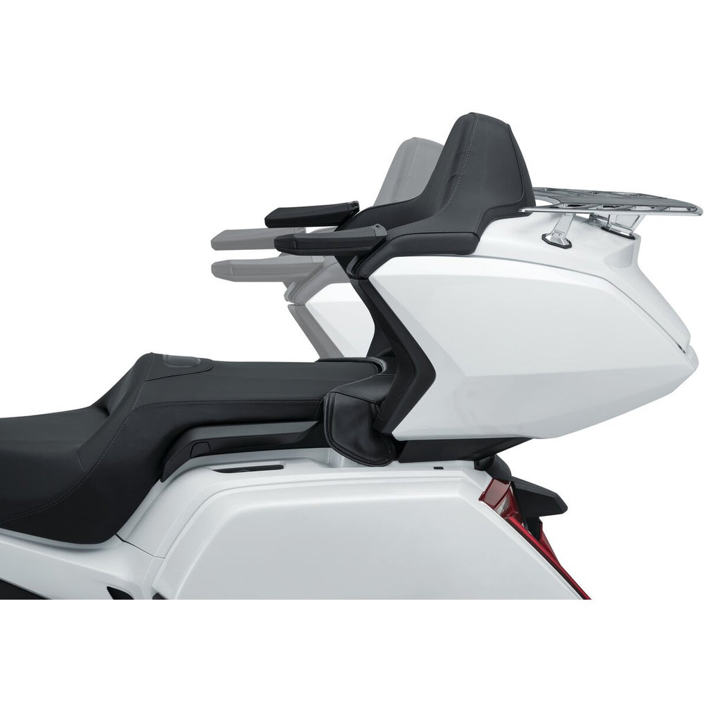 Este kit de reubicación desplaza el maletero de la Gold Wing hacia atrás y hacia arriba, lo que proporciona un poco más de espacio para respirar tanto al conductor como al pasajero. Se instala con los accesorios suministrados y viene con una almohadilla de relleno para cubrir el hueco y el cableado, de modo que una vez atornillado, el conjunto queda con un aspecto impecable, como si fuera de fábrica.