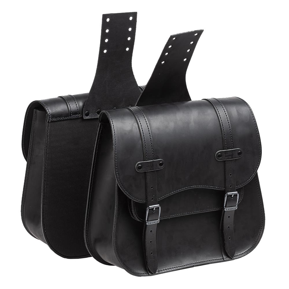 Este juego de alforjas de Ledrie ofrece una gran capacidad de almacenamiento y un estilo clásico que se adapta a cualquier motocicleta personalizada. Fabricadas en cuero genuino de primera calidad con un grosor de 2,8 mm, cada bolsa cuenta con un panel trasero de HDPE de 4 mm de grosor cosido para una excelente retención de la forma y resistencia de montaje. Estas alforjas están hechas a mano para mantener una alta calidad constante. Se pueden montar en la mayoría de las motocicletas.