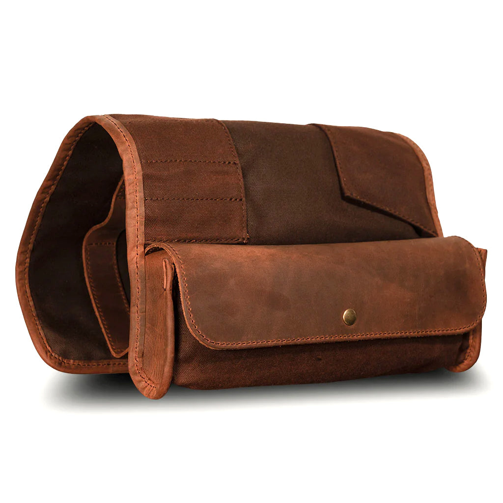 - Fabricada en cuero auténtico y algodón encerado de 22 oz.