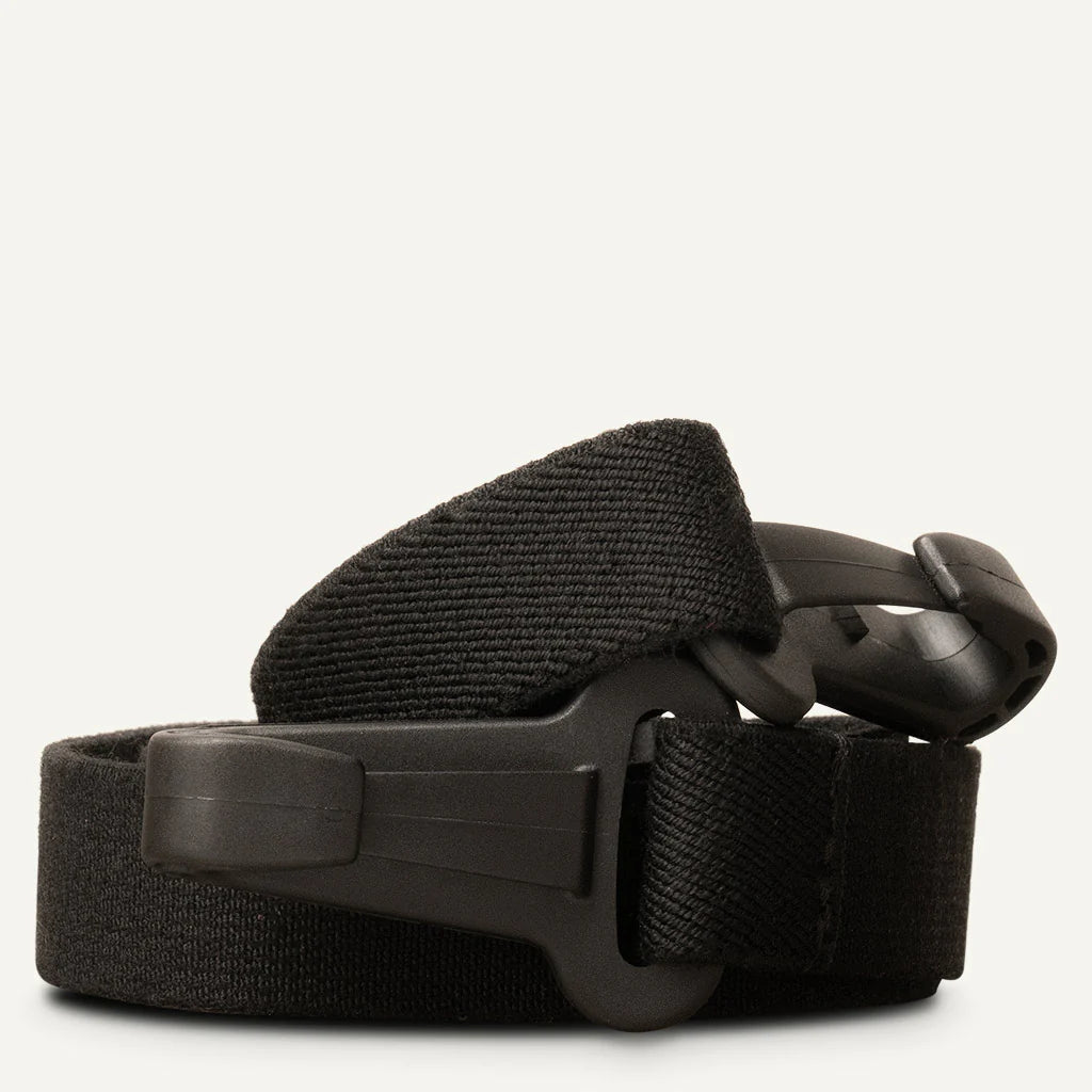 La correa elástica para equipaje Longride es una correa plana resistente diseñada para mantener tu equipaje seguro en la bicicleta. Con una correa de 3 cm de ancho y mosquetones de grado militar en ambos extremos, garantiza una sujeción firme y evita deslizamientos accidentales. Fabricada para soportar hasta 30 kg de tensión, es una solución fiable para sujetar el equipo en cualquier viaje.