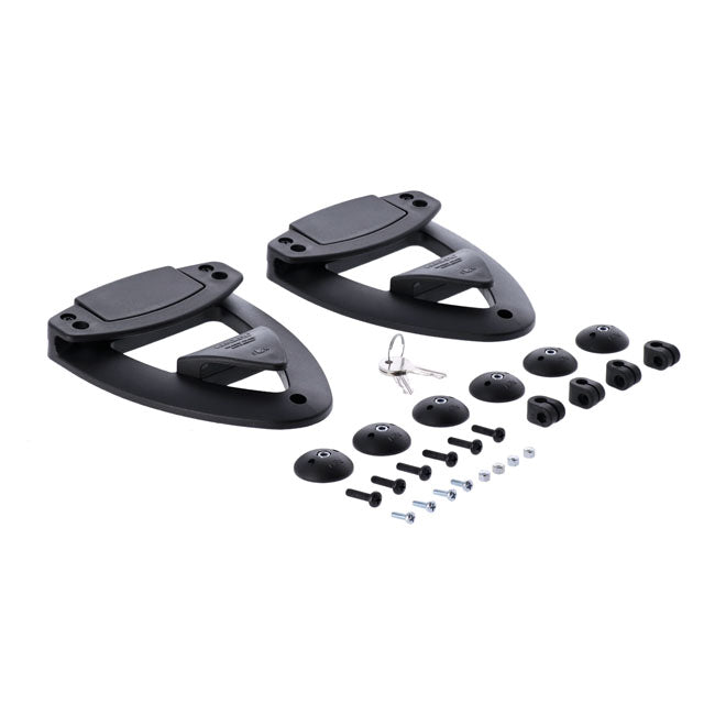 Estas alforjas utilizan el sistema Longride Click-On para montarlas y desmontarlas en segundos. Cada bolsa viene con un accesorio Click-On que se monta en la parte trasera de la bolsa y se encaja en los soportes de la motocicleta (se venden por separado aquí), que son necesarios para la instalación. Los soportes están disponibles como accesorios de ajuste directo para muchas motocicletas o en versiones universales. Estas bolsas también se pueden utilizar sin el sistema Click-On si se prefiere.