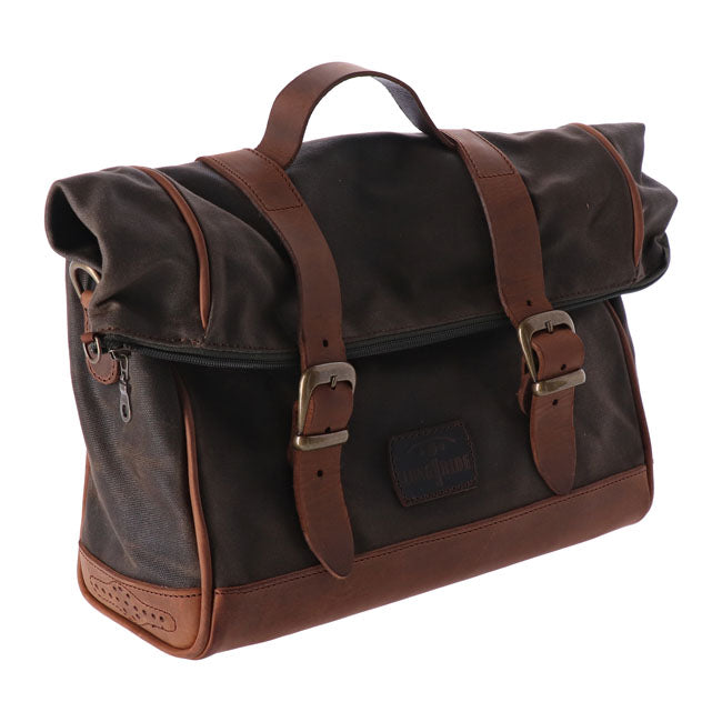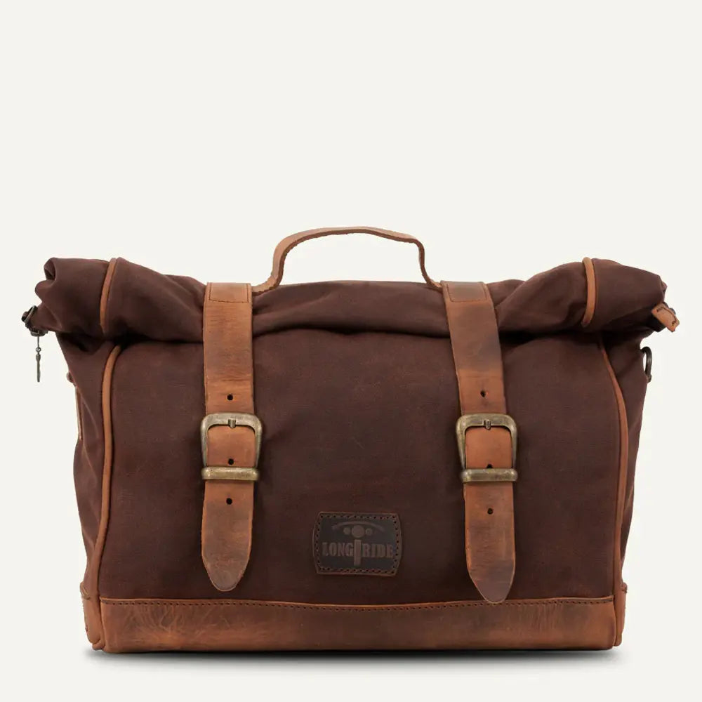 - Fabricada en algodón encerado resistente a la intemperie y cuero auténtico.