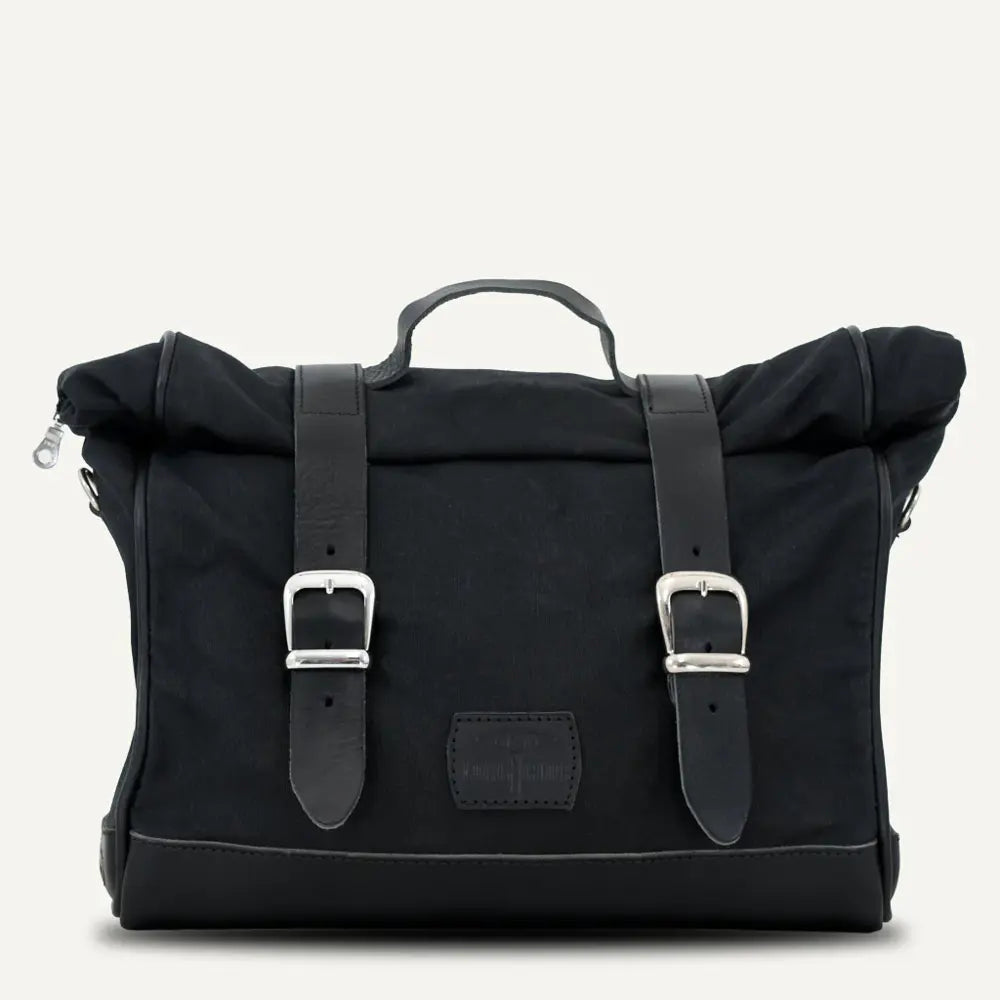La alforja vintage Mini Patriot Roll Top Click-On se inspira en las bolsas de mensajero utilizadas por el ejército francés. La bolsa está confeccionada con lona francesa de 22 oz de la más alta calidad y cuero belga curtido vegetal.
