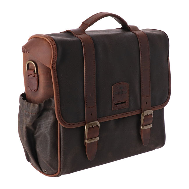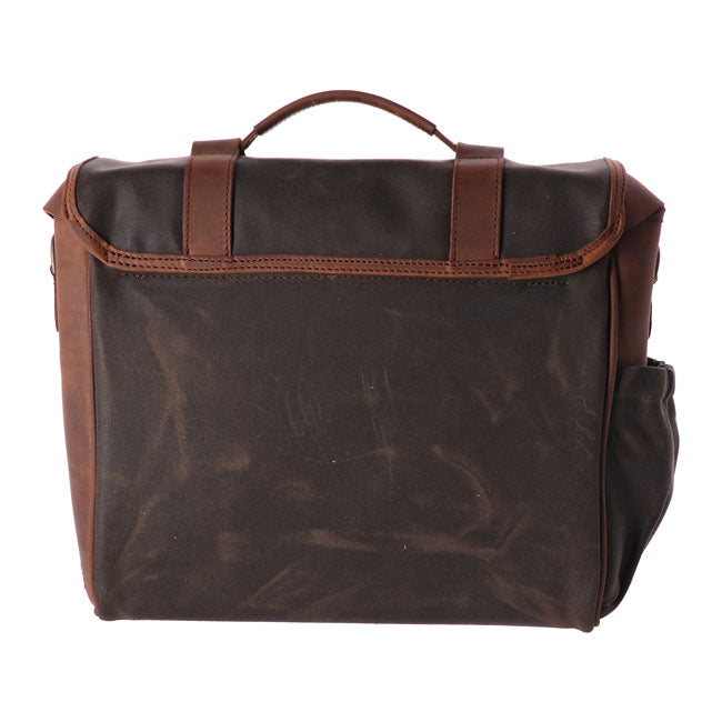 La alforja vintage Racer Click-On aporta un estilo retro atemporal con practicidad moderna a tu motocicleta. Fabricada a mano con algodón encerado resistente a la intemperie y cuero de vacuno de grano completo curtido vegetal grueso.