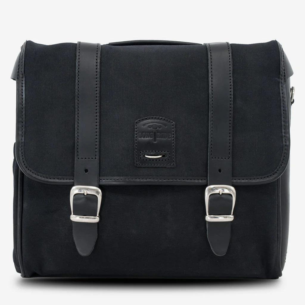 Esta bolsa utiliza el sistema Longride Click-On para montarla y desmontarla en segundos. Cada bolsa viene con un accesorio Click-On que se monta en la parte trasera de la bolsa y se encaja en los soportes de la motocicleta (se venden por separado aquí), que son necesarios para la instalación. Los soportes están disponibles como accesorios de ajuste directo para muchas motocicletas o en versiones universales. La alforja Racer también está disponible con un sistema de montaje con correas universales.