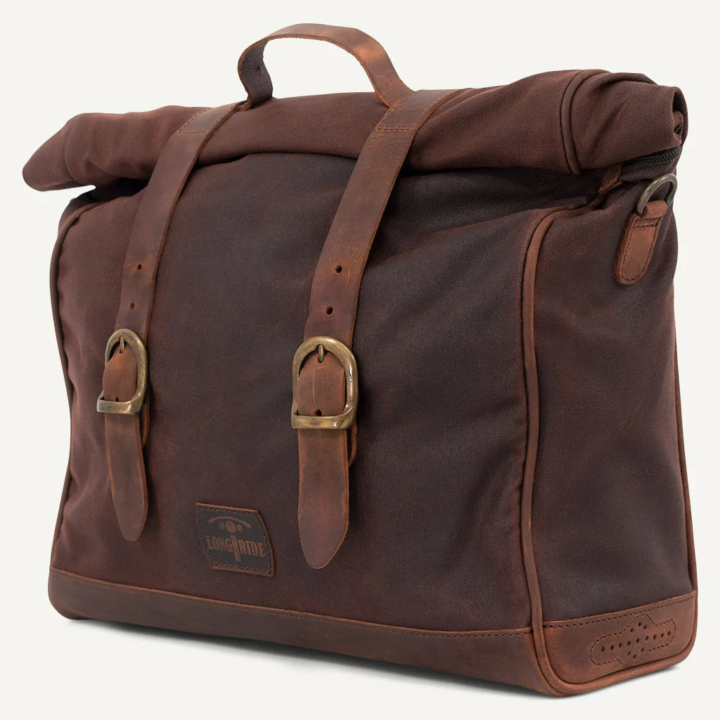 La alforja vintage Super Patriot Roll Top Click-On se inspira en las alforjas militares utilizadas durante la Segunda Guerra Mundial. La bolsa está confeccionada con lona francesa de 22 oz de la más alta calidad y cuero belga curtido vegetal.