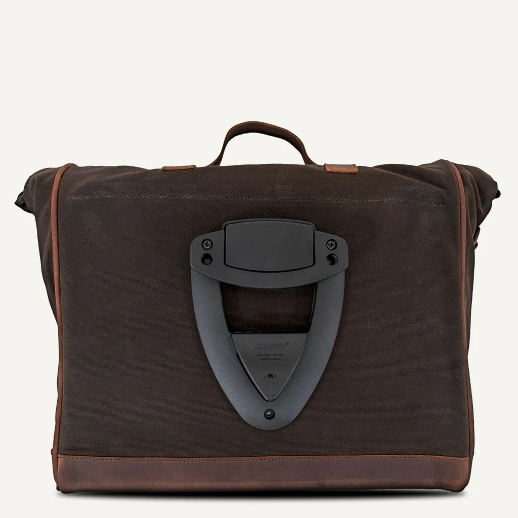 Esta bolsa utiliza el sistema Longride Click-On para montarla y desmontarla en segundos. Cada bolsa viene con un accesorio Click-On que se monta en la parte trasera de la bolsa y se encaja en los soportes de la motocicleta (se venden por separado aquí), que son necesarios para la instalación. Los soportes están disponibles como accesorios de ajuste directo para muchas motocicletas o en versiones universales. La alforja Super Patriot también está disponible con un sistema de montaje con correas universales.