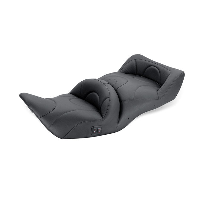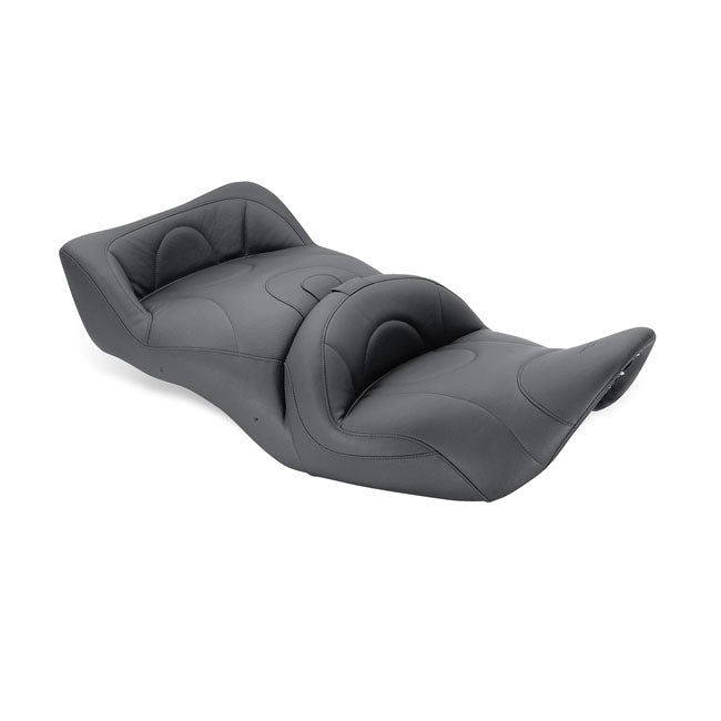 El asiento doble Standard Touring convierte tu Gold Wing en una máquina verdaderamente cómoda para largas distancias. Su diseño profundamente contorneado le permite sentarse más bajo y más cerca de la moto, lo que le proporciona un mejor control y una sensación más relajada en los viajes largos. Tanto el conductor como el pasajero se benefician de la espuma de densidad controlada especialmente desarrollada por Mustang, que distribuye el peso de manera uniforme y reduce los puntos de presión para ofrecer la máxima comodidad.