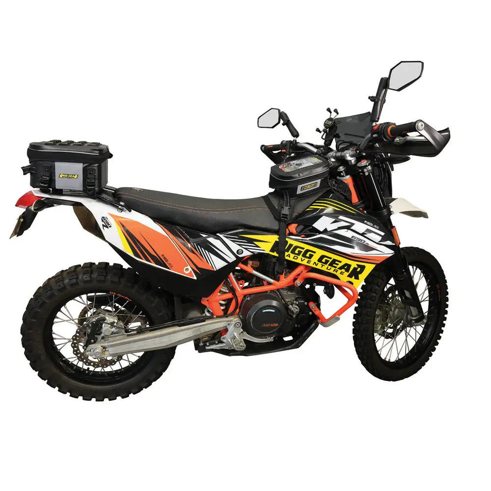 Esta bolsa trasera compacta e impermeable está diseñada para motociclistas de doble deporte y enduro que necesitan un almacenamiento fiable sin volumen. Su resistente construcción resiste los elementos, mantiene su forma incluso cuando está vacía y se monta de forma segura en la mayoría de las motocicletas. Con detalles inteligentes como correas internas, bolsillos de malla y un panel MOLLE, mantiene tu equipo organizado y accesible en la pista o en la carretera.