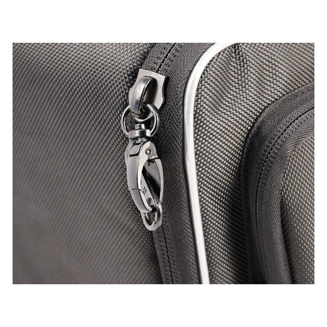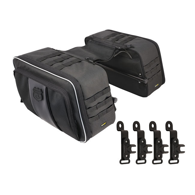 Las alforjas Road Trip Nelson Rigg están diseñadas para motos cruiser y ofrecen un ajuste seguro, una estructura resistente y un almacenamiento práctico. Fabricadas con tejido UltraMax, líder en el sector, con máxima protección contra los rayos UV. Diseño superpuesto con soportes de montaje en guardabarros personalizados incluidos.