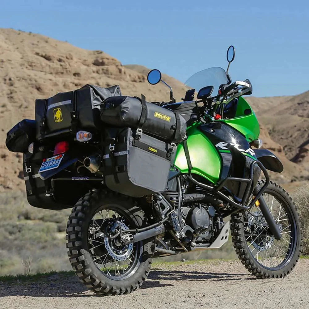 Las alforjas secas Sierra están diseñadas para la aventura y ofrecen 100% protección impermeable y gran durabilidad. Fabricadas en PVC resistente de 24 oz con costuras termosoldadas, mantienen tu equipo completamente seco en cualquier condición meteorológica. Los herrajes de aluminio de calidad aeronáutica garantizan la resistencia sin piezas de plástico frágiles, mientras que los forros extraíbles facilitan el embalaje y desembalaje.