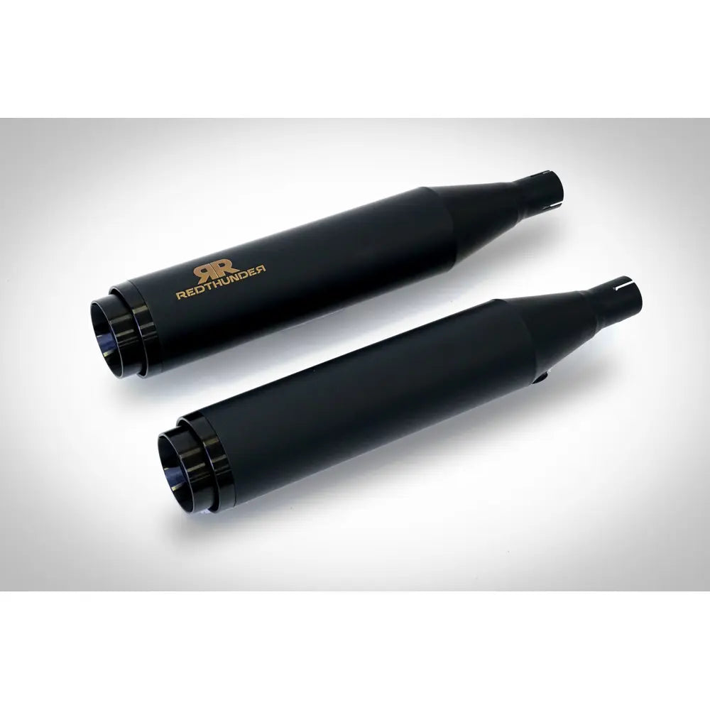 Actualice su Harley con RedThunder Euro Aprobado Slip-On Silenciadores. Diseñado para una instalación rápida y fácil en los colectores de escape de valores, estos slip-ons premium son hechos a mano en Italia utilizando acero inoxidable de alta calidad y aluminio billet. Son E-aprobado, haciéndolos totalmente legal en la calle en toda Europa. Elija entre un acabado pulido espejo o un recubrimiento negro cerakote para el look perfecto.