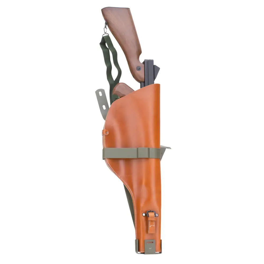 El Samwel soporte y la funda del portarifle son reproducciones fieles de los originales que se encuentran en los modelos militares 45CI de Harley-Davidson. El soporte se monta en el lado derecho de la horquilla delantera, igual que en la configuración original de la Segunda Guerra Mundial.