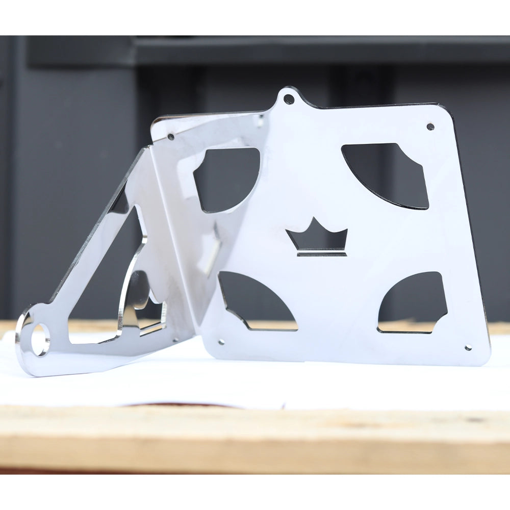 El soporte universal para matrícula de motocicleta de Swedish Motorcycle Parts es un accesorio muy atractivo y fácil de usar que le dará a tu motocicleta un aspecto realmente personalizado. Diseñado para montarse en el eje de la rueda trasera, el perno de la suspensión u otros puntos del lado izquierdo, es la elección perfecta para bobbers, choppers, café racers y otras motos personalizadas.