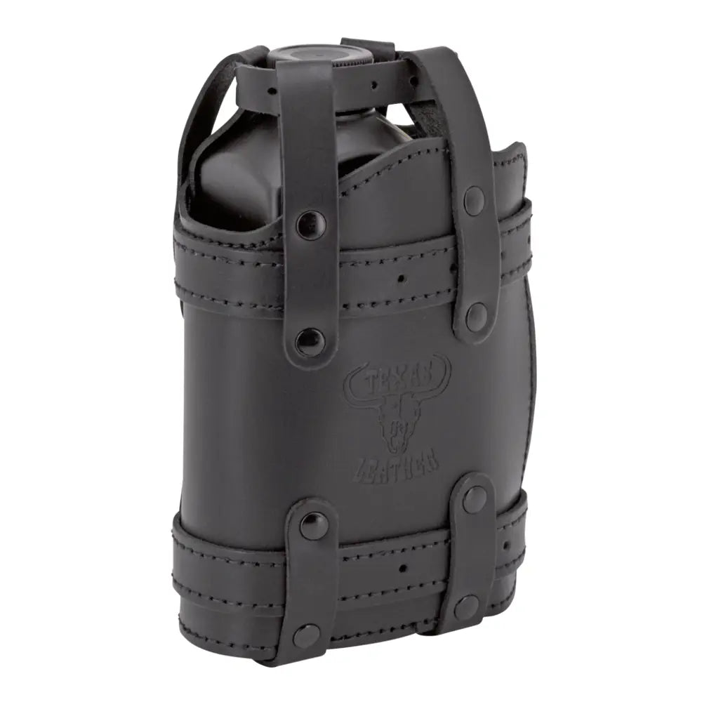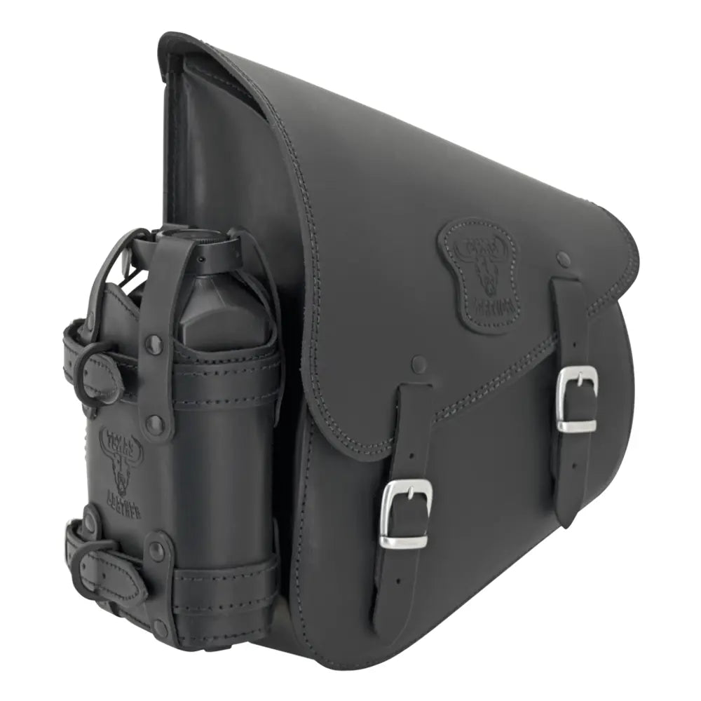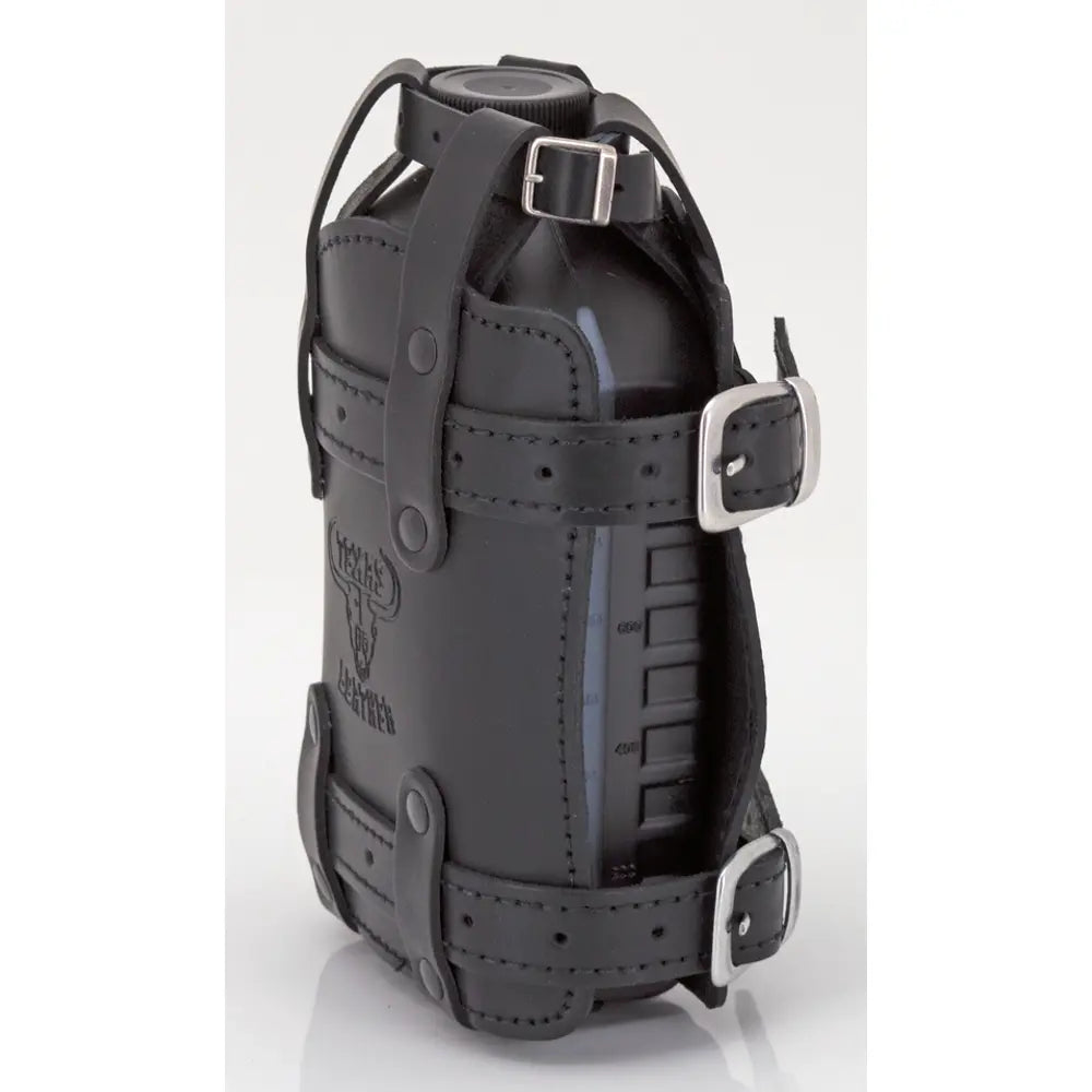 El Texas Leather soporte para botellas de aceite se adapta a la mayoría de las botellas de aceite rectangulares de 1L para facilitar su fijación a la moto. Fabricado en cuero auténtico.
