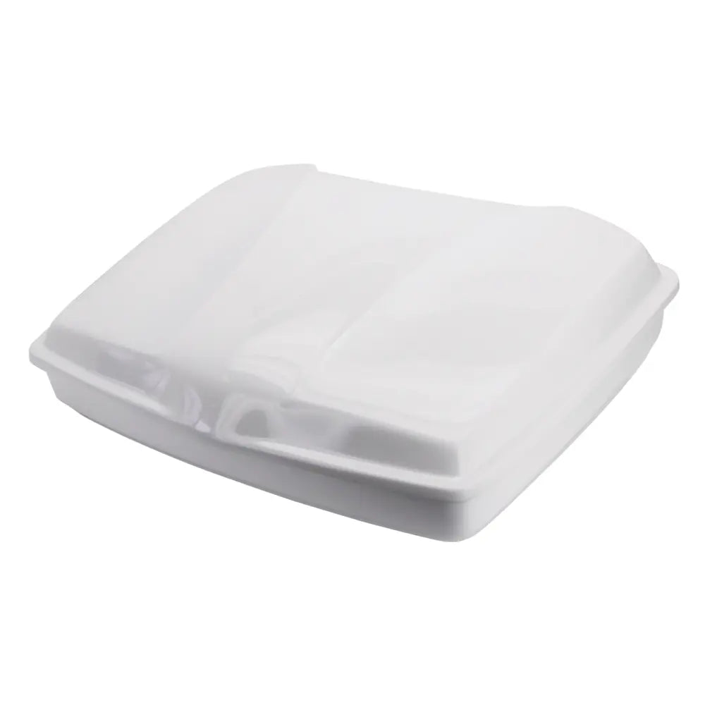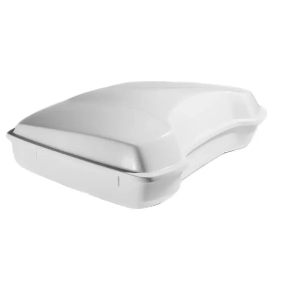 - Fabricado en fibra de vidrio resistente con acabado de gelcoat blanco.