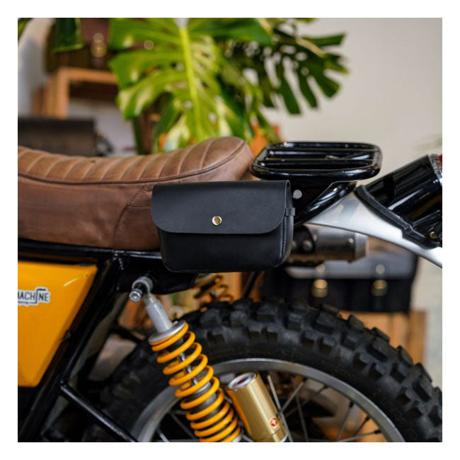 La bolsa para motocicleta Sidekick es una bolsa de cuero compacta que funciona tan bien en tu moto como fuera de ella. Diseñada originalmente como bolsa para el manillar, rápidamente demostró que se adapta a cualquier parte de la motocicleta y que es igual de práctica para llevarla contigo. Fabricada a mano con cuero grueso y resistente, está diseñada para soportar años de uso y desarrollar una pátina única con el paso del tiempo.