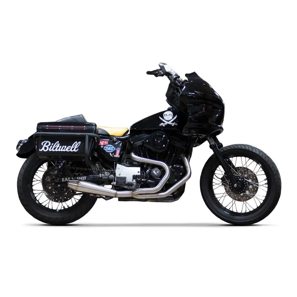 Nota para 18-25 Softail (excl. Low Rider ST / Sport Glide / Heritage): Este escape se adaptará a la mayoría de los tipos de alforjas montadas en estos modelos si se utiliza con este kit de reubicación de alforjas.