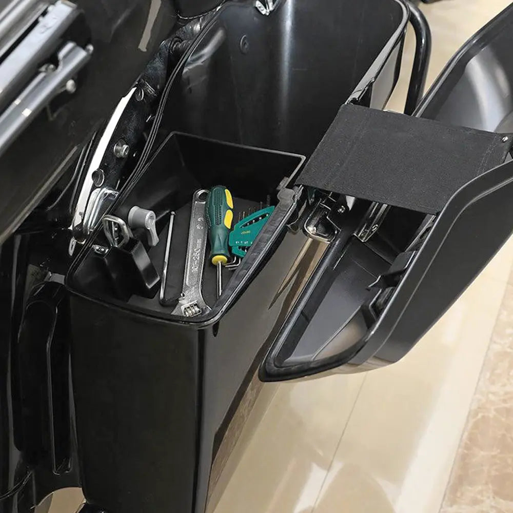 These saddlebag organizer inserts keep your small essentials from disappearing under everything else. Designed to sit just under the lid, they make items like your phone, wallet, or keys easy to find and grab on the go.